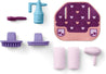 The wellness session in the horse grooming station is going so well, the horse doesn't want to leave. The beauty horse is really enjoying all the brushing and sponging. To help the mane and tail dry faster, there's a hairdryer waiting in the drawer. Now the styling can begin. You can add beads, bows or flowers and there's even an extra strand of hair. To make sure everyone knows you belong together, the horse and rider have a matching look: the horse blanket and vest have the same pattern and even the gaiters match the armband.