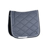 This ultra soft dressage saddle pad is the ultimate in comfort for your horse. Super soft cotton waffle weave lining and eco fill offer natural breathability. The Navy Mini Check print is accented by a complimentary diamond quilt.