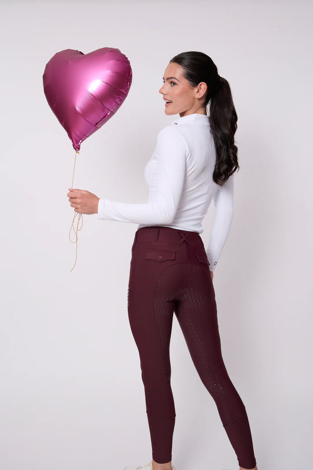 Designed with a high waistband for a secure, flattering silhouette, these breeches feature decorative back pockets, a practical phone pocket, a full silicone seat for added grip, and embroidered logos on both sides for a polished finish.