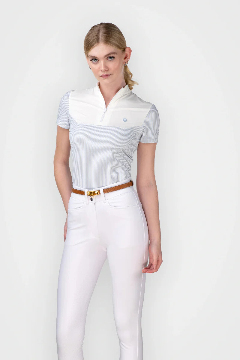 Crafted from feather-light, non-cling fabric, our new Coastal Stripe competition top blends refined style with peak performance. Cut to a flattering hip-grazing length, it’s designed to be worn tucked in or loose—effortlessly polished either way.