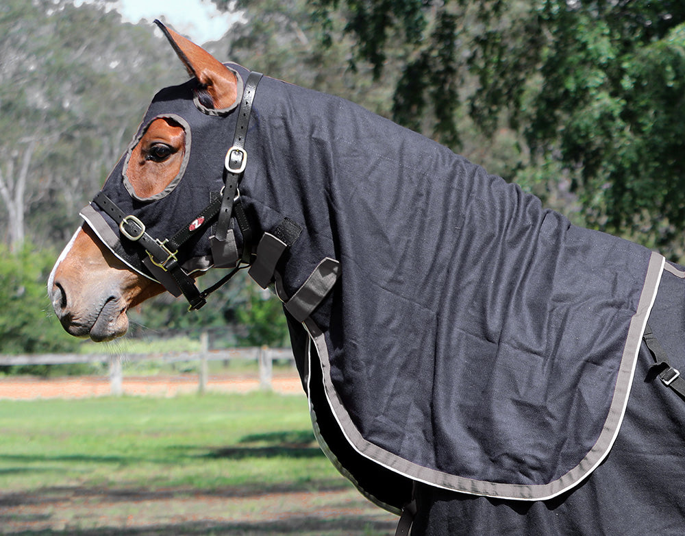 The Stadium wool hood offers a natural blended fibre which provides both insulation and breathability. A medium weight of 425g, with a tough poly/cotton binding makes it ideal for the stable and is easily smart enough to double as a show hood.